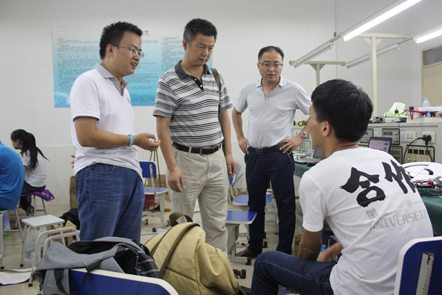 李亚) 9月8日下午,教务处副处长黄亮在学院党委副书记吴长义的陪同下,前往金工实训中心看望正在进行安徽省大学生电子设计竞赛参赛的学生,现场了解竞赛进展情况。
