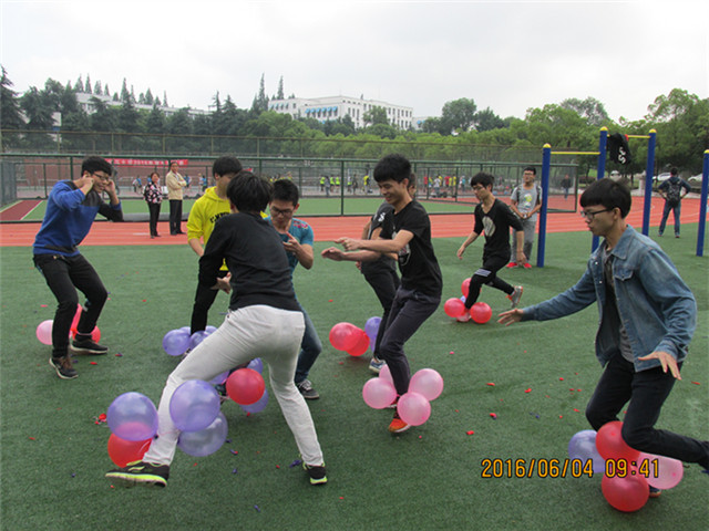 本次活动以“走下网络,走出宿舍,走向操场”为主题,倡导学生热爱运动,热爱生活。运动会共分踩气球、单腿短跑、三人四组、地雷阵、送鸡毛信、拔河等六个项目,在踩气球的欢声笑语中,此次趣味运动会拉开帷幕。随后的三人四组比赛也充满欢乐,充分考验同学们的默契度。整个赛场气氛激烈又不失轻松愉快,参赛同学们尽力完成每一项项目,全身心的投入在比赛中,围观同学不时发出欢快的笑语,同学们将青春的光芒发挥到极致,充分感受到友谊第一比赛第二的宗旨。