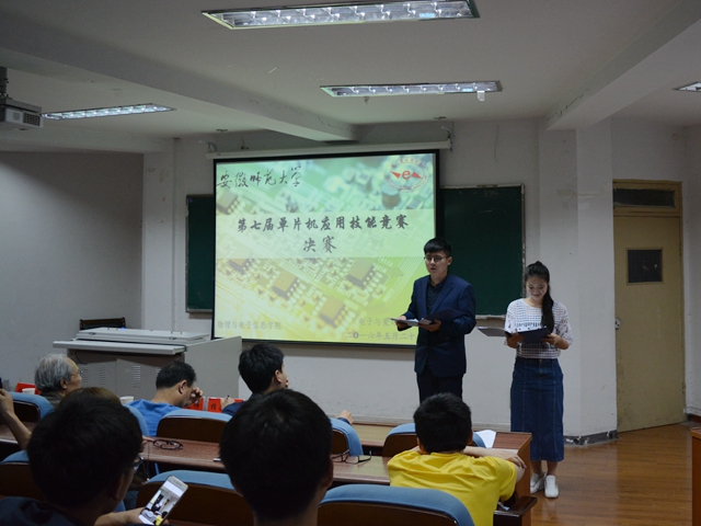学子创新实践热情,作为学院第八届“走进科学”科技文化节子活动,由院团委主办,电子爱好者协会承办的单片机应用技能竞赛于5月27日晚在行政楼三楼报告厅顺利落幕。本次比赛邀请了危启正教授、专业教师张道秧、协会指导老师蔺玉柱、团委书记米佳佳以及2015级辅导员李亚担任评委。