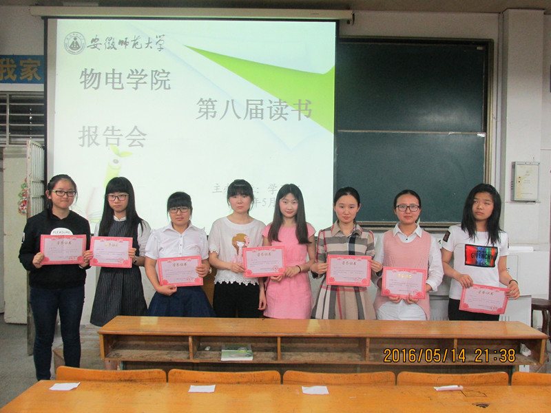 学生会学习部主办的第八届读书报告会于2016年5月14日19:00在物理楼3301教室举行。院团委书记米佳佳出席了本次报告会,学习部部长汪叶梦担任本次活动评委。