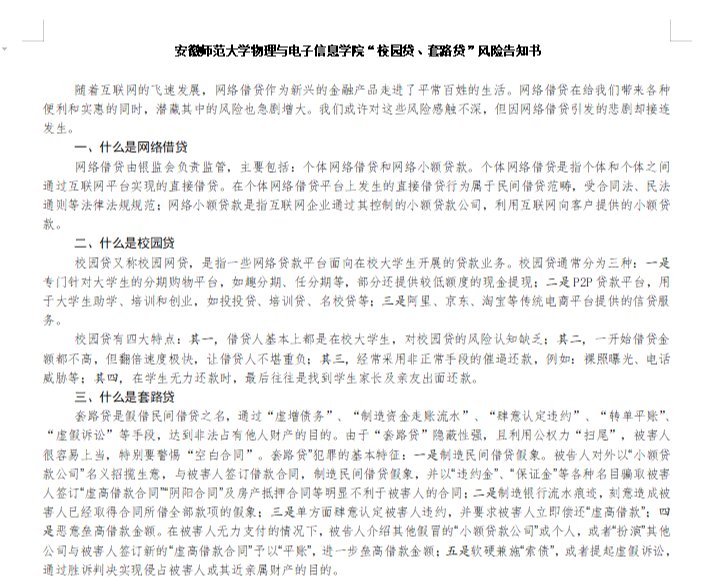 为进一步加强大学生对于不良校园网贷的认识和了解,学院组织印发《安徽师范大学无翼鸟