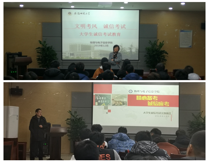 承诺践诺促成效。同时由辅导员领学《安徽师范大学考场规则》、《安徽师范大学学生违纪处分条例(试行)》的相关规定,并在辅导员的带领下各专业学生进行诚信考试宣誓,并签订诚信应考承诺书,督促学生严格遵守考场纪律,诚以待人、诚信考试。