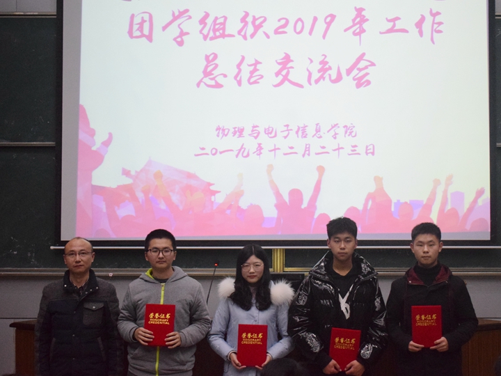 会上,宋凤楼梳理了学院团学工作在2019年中取得的成绩。学院团委、学生会、电子协会、发明协会4个组织的学生负责人依次上台,总结年度工作、梳理问题不足、介绍来年计划。与会老师为年度团委优秀委员,学生会优秀部员,协会优秀理事、会员颁发了荣誉证书。