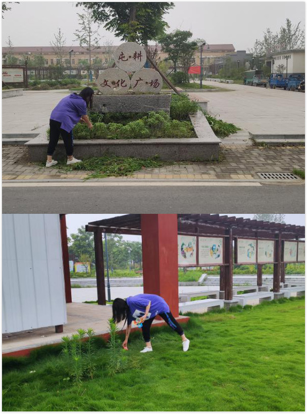 统筹兼顾,积极践行。7月26号,团队成员崔欠欠走进了她的家乡,积极组织乡村中小学生开展“清洁工程”志愿服务活动,利用假期和清洁工人同时上班。在了解清洁工人的工作情况及垃圾箱的分布情况的基础上投身实践,和工人们一起拾捡垃圾,除草,清扫街道。通过此次活动,队员深刻了解到环卫工人的艰辛,也意识到增强中小学生文明意识的重要意义,从自身做起,从小事做起,队员鼓励同学们能积极查找身边不文明行为,为美化乡村文明贡献出自己的力量。