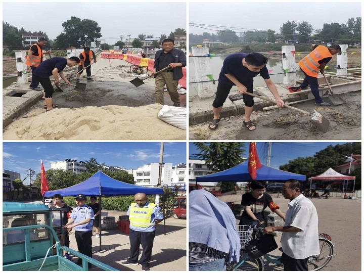团队成员2018级电子信息张绪龙,连续多日投入到家乡全椒县古河镇的防汛救灾工作。7月31日,大水退去,当地政府决定修补遭洪水破坏的古河大桥,保障受灾群众迅速恢复生产生活。在当地党委政府统一安排下,张绪龙拿起铁锹,与其他志愿者们参与桥面修复补损工作,虽然雨后放晴高温难耐,但张绪龙迎难而上,充分彰显00后青年担当。