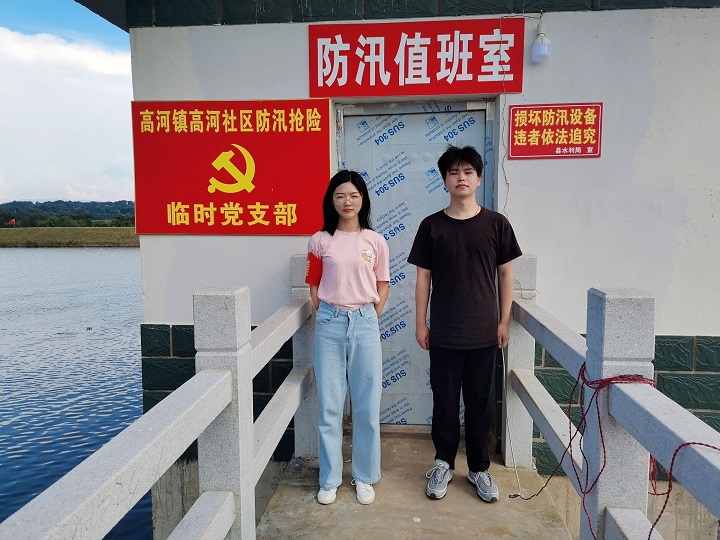 虽然目前安徽出梅,水位逐渐下降,但防汛预警尚未解除,队长王竹林和队员2019级电子信息类学生张志杨毫不松懈,依然坚守在高河大堤上。两人互相配合,分工合作,连日来,完成巡堤查险、搬运沙袋、检查水泵水袋等工作,用实际行动践行着“洪水不退,我们不退”的誓言。