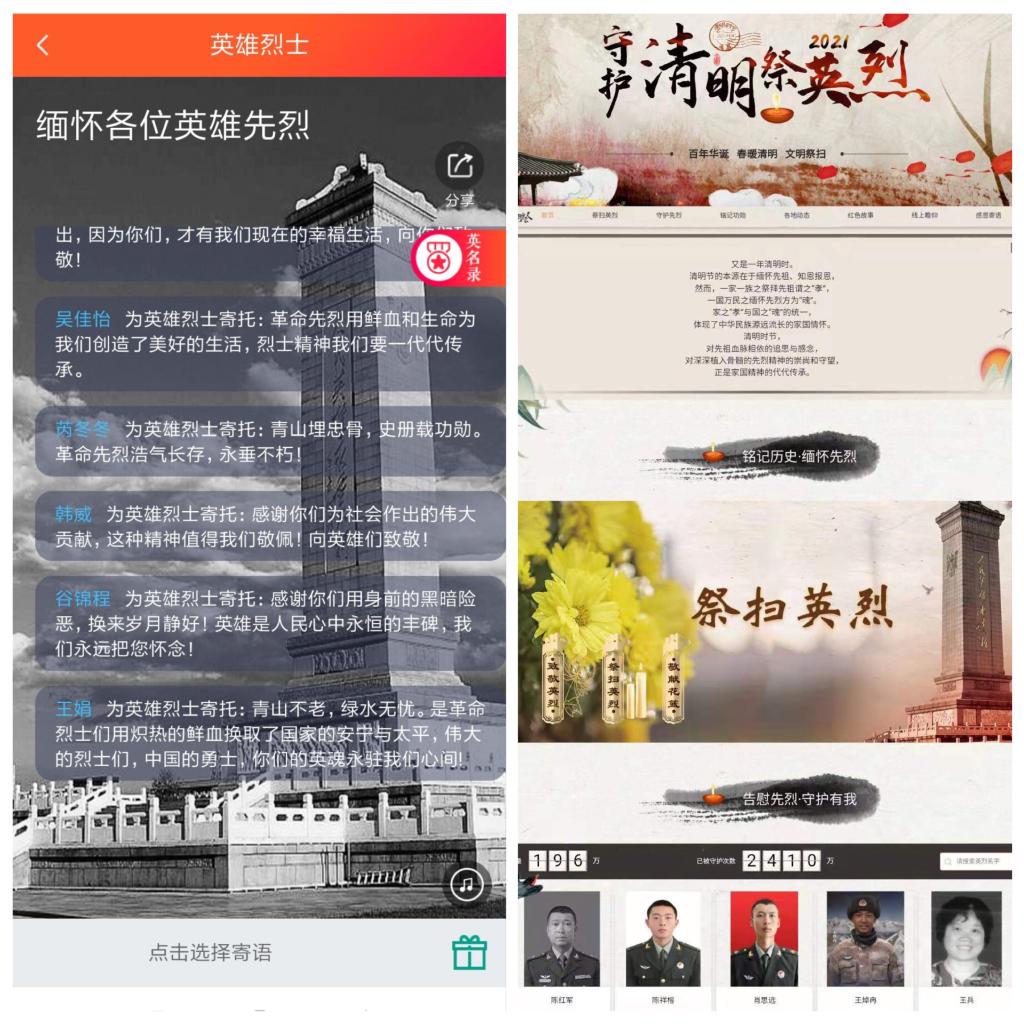 为进一步强化新媒体优势,学院积极开展形式多样的网上祭扫活动,深化线上思政教育。烈士陵园祭扫结束后,不少学子在线上发表祭奠感言,向历代革命先辈、向为新中国成立和人民幸福生活而英勇献身的烈士们致敬;学院团员青年在中华英烈网“青年祭英烈”专栏开展“守护·2021清明祭英烈”为主题的网上祭扫英烈活动,通过写下感言寄语追思革命烈士们;此外,为强化精神文化传承,提倡文明祭祀,学院团委青年骨干在“皖事通”APP发起清明“云祭祀”,用现代文明的方式表达真诚厚重的浓浓哀思。
