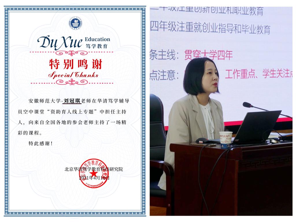 注重增强辅导员职业使命意识。通过定期开展理论学习、业务培训、主题沙龙、支持辅导员走出去参与各类工作交流,切实增强辅导员的使命意识和责任意识。刘冠琪赴兄弟院校和培训班参与辅导员工作分享和交流、刘燕参加《新时代辅导员生涯品牌塑造与能力提升》专题培训、辅导员张津源参加安徽省大学生智能汽车竞赛研修。