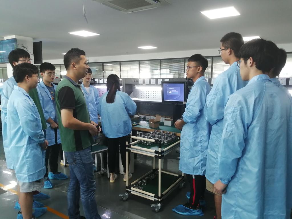 在芜湖埃泰克汽车电子生产一线,冯友宏老师与实践队员们一道了解工厂生产流程,认真询问队员们实践期间所进行的实习岗位以及工作内容,听取每位实践队员的学习体会。冯老师还叮嘱实践队员们在社会实践中要有所收获,做到精诚团结、集思广益,发挥团队凝聚力。他对实习过程中的安全问题进行进一步的强调,希望队员们能够安心实习,在实习中收获知识,增长才能。