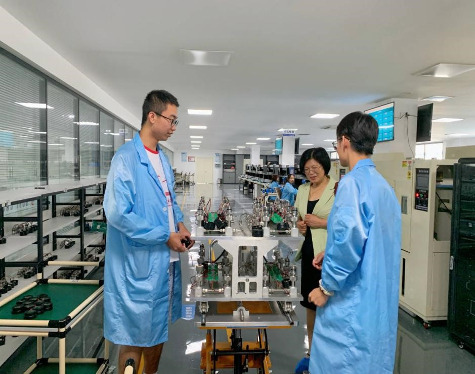 在江苏在江苏杰克仪表有限公司,学院党委书记李娟现场观摩实践团队工作情况。她指出,企业与高校进行校企合作并回报社会,这是一项具有重要意义的公益事业,是贯彻科教兴国和人才强国战略,促进和谐社会建设的有益实践和重要举措。今后除了实习基地建设等“初级层面”的合作关系外,将逐步推广到合作建设专业实验室,促进高校及企业加速生长。李娟书记着重强调实习安全和实习纪律,希望通过实习,同学们的专业知识在实践中都能得到充分运用,做到虚心学习,珍惜此次实习机会,使得个人迅速成长。