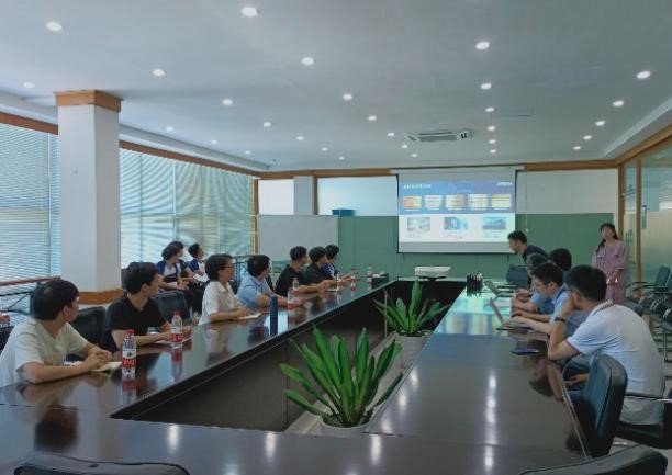 (图)冯友宏老师在与实践队员们共同聆听公司发展介绍