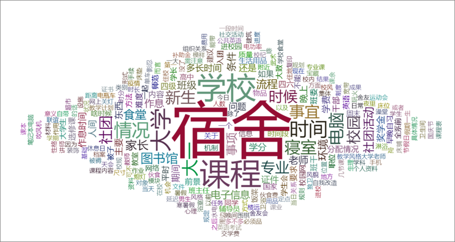 为全面了解新生所思所盼、所忧所虑,更好地开展教育服务工作,学院运用问卷星平台定制“关于大学,你想知道啥?”网络调查问卷。通过在新生班级QQ群中发放问卷链接,共征集得到800余条新生意见。在词频软件分析的基础上,新生辅导员相继组织开展暑期班会,针对新生关注的疑点、难点和重点问题逐一解答,破除不实网传言论,平复新生焦虑情绪,教育引导学生正确应对即将开启的大学生活。