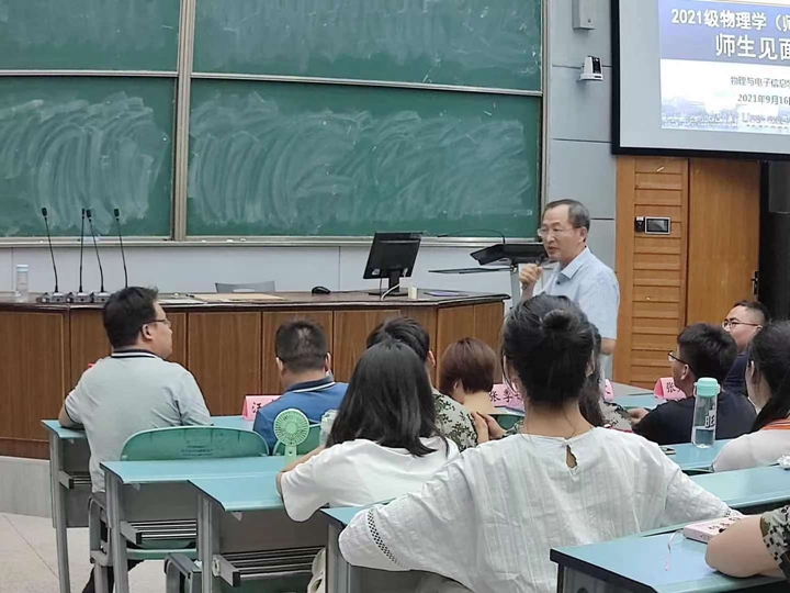 传“道”授“业”,引导初探学习之法。大学之大,在于大学问、大思想。初入大学的物“21”们,学习思维尚停留在在中学时期,大学学习的方法和思维尚未建立。专业老师们基于不同课程特点,借用专业理论向同学们分别阐释了保持目标的重要性,强调做学问要保持热爱、热情和希望,勉励新生们戒骄戒躁、持之以恒,提醒他们找准位置,做好规划,同时正确处理人际关系,遵守校纪校规。此外,高数老师们向同学们解释了高等数学的难度和重要性,提示同学们合理安排时间投入。老师们倾囊相授,敦敦教诲让新生们受益匪浅。
