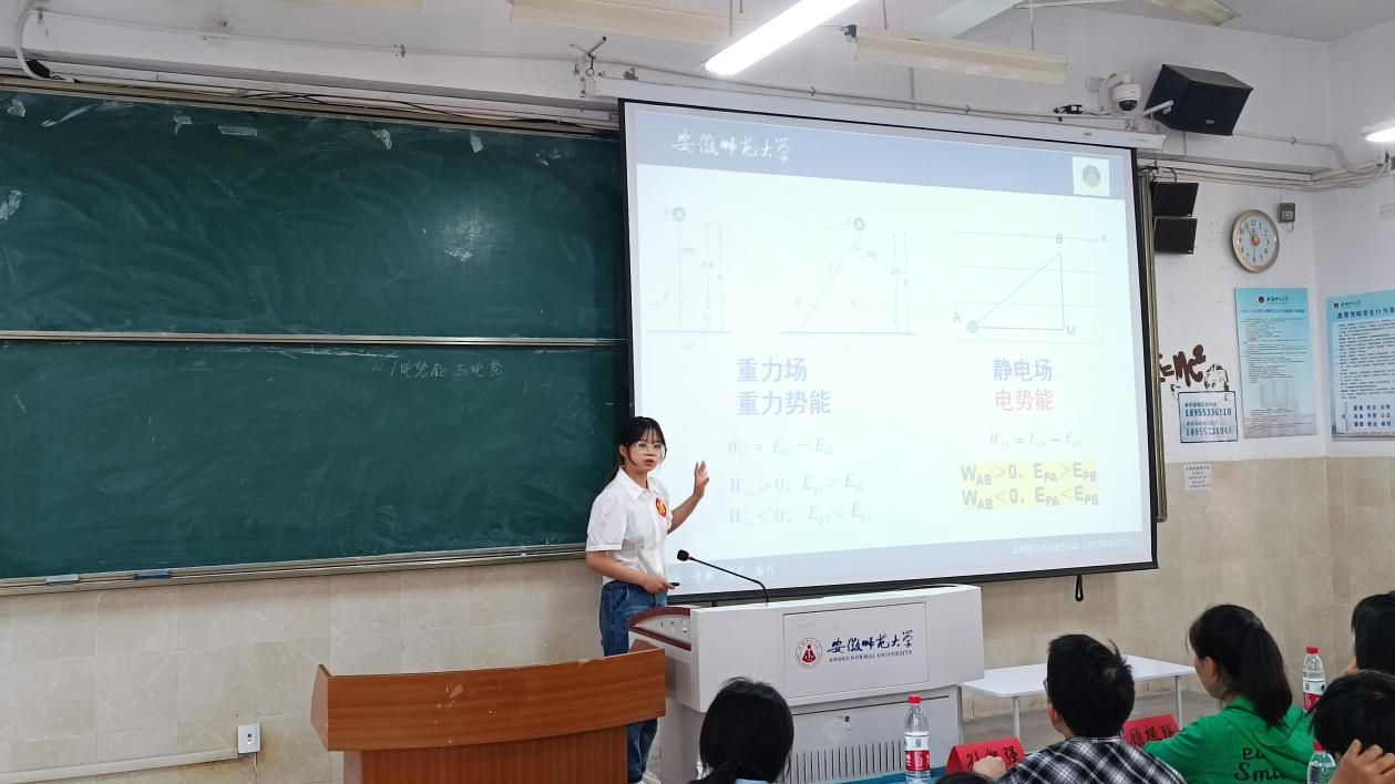 本次参赛的16位选手分别进行8分钟模拟授课,为体现真实教学环境中选手的专业技能,邀请了15位物理师范专业的本科同学聆听与互动。有的选手根据教育知识的积累和对教学内容的深刻研究,设计出生动严谨的教学互动;有的选手利用学院提供的丰富的教学资源和技术支持,设计出极具创意的教学小实验。选手们教学技能扎实,教学过程各具风格,与学生的积极互动让现场氛围时刻活跃。评委老师结合教案、课堂教学内容、教学方法、课堂板书、教学语言与教态等综合表现进行打分,并为每位选手的模拟授课过程进行针对性评价,从教学活动的逻辑思维、选手授课的精神风貌,到细节的板书和肢体语言,体现了评委老师严格认真的指导精神,选手们受益匪浅。