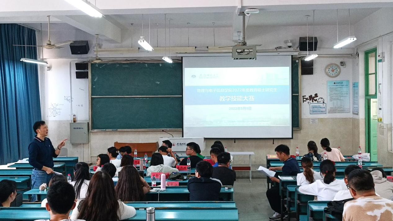 于5月8日上午在1号教学楼202教室举办了2022年度物理教育硕士研究生教学技能大赛。安徽师范大学附属中学教务处石奇印主任、无翼鸟