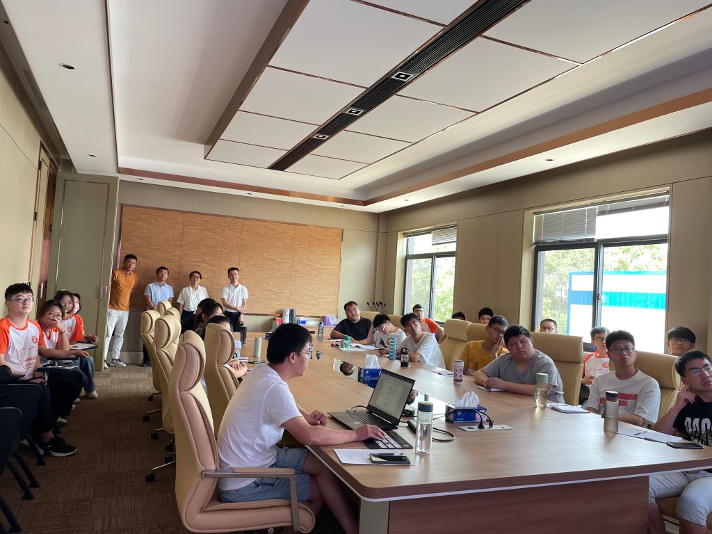 随后,张爱清一行来到麦可威电磁科技有限公司,因实践队员仍在认真培训,领导老师们不忍耽误同学们宝贵学习时间,与王敏就学生实践情况、目前公司发展以及未来合作等方面进行了简短交流。