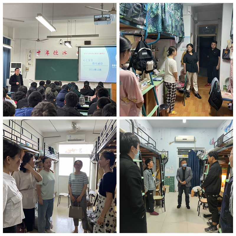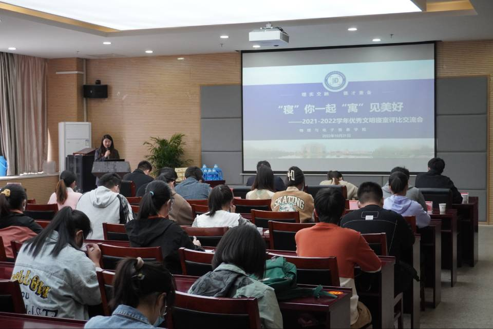 在物理楼304会议室举办2021-2022学年优秀文明宿舍评比交流会暨冬季寝室安全培训会。学院党委副书记黄友生、团委书记刘冠琪、全体专兼职辅导员及各年级代表寝室寝室长参加本次会议。本次会议由辅导员李慧芳主持。