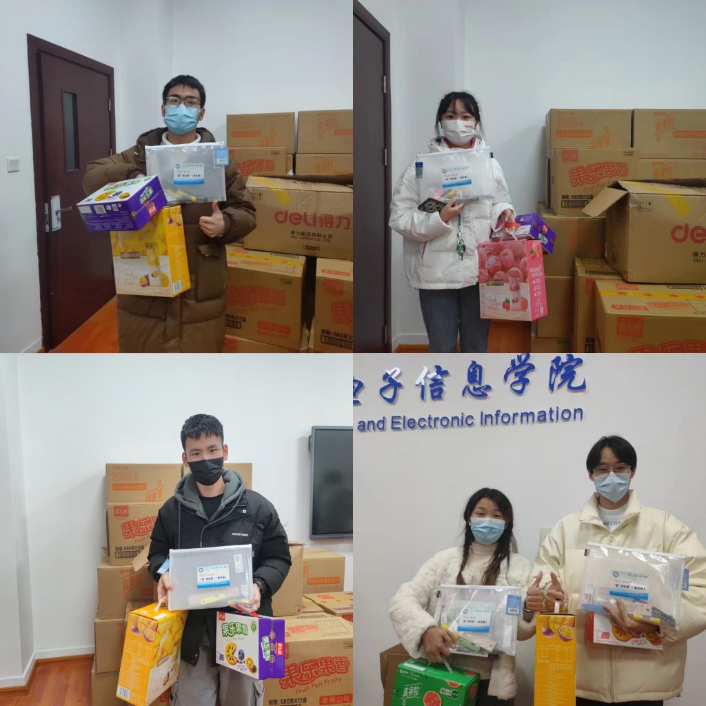 会后,全体领导老师为考研学生代表发放了防疫物品、考研用具和慰问品,并合影留念。