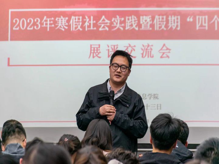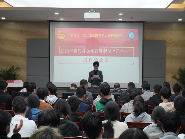 在物电楼304会议室举办主题为“学习二十大、永远跟党走、奋进新征程”的2022-2023学年“行走的思政课堂”寒假社会实践暨假期“四个一”展评交流会。物理学专业负责人、教授吕建平,物理学拔尖班负责人,教授盛晓伟、工程实训中心主任蔺玉柱,电子系专业教师,副教授王桂丽,通信系专业教师韩凌云及学院全体专兼职辅导员担任评委,2021级、2022级部分学生代表到场参会观摩学习,评比汇报会由2022级学生牛士航主持。