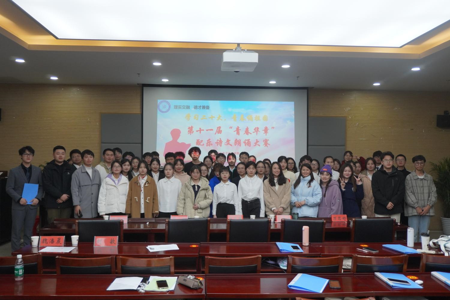 于物电楼304会议室成功举办第十一届“青春华章”配乐诗文朗诵大赛。院团委书记刘冠琪老师、院学生会指导老师李慧芳老师、院物理爱好者协会指导老师曹阳老师、院2022级全体辅导员、院学生会主席团应邀担任评委。本次活动由院主持人队负责主持。