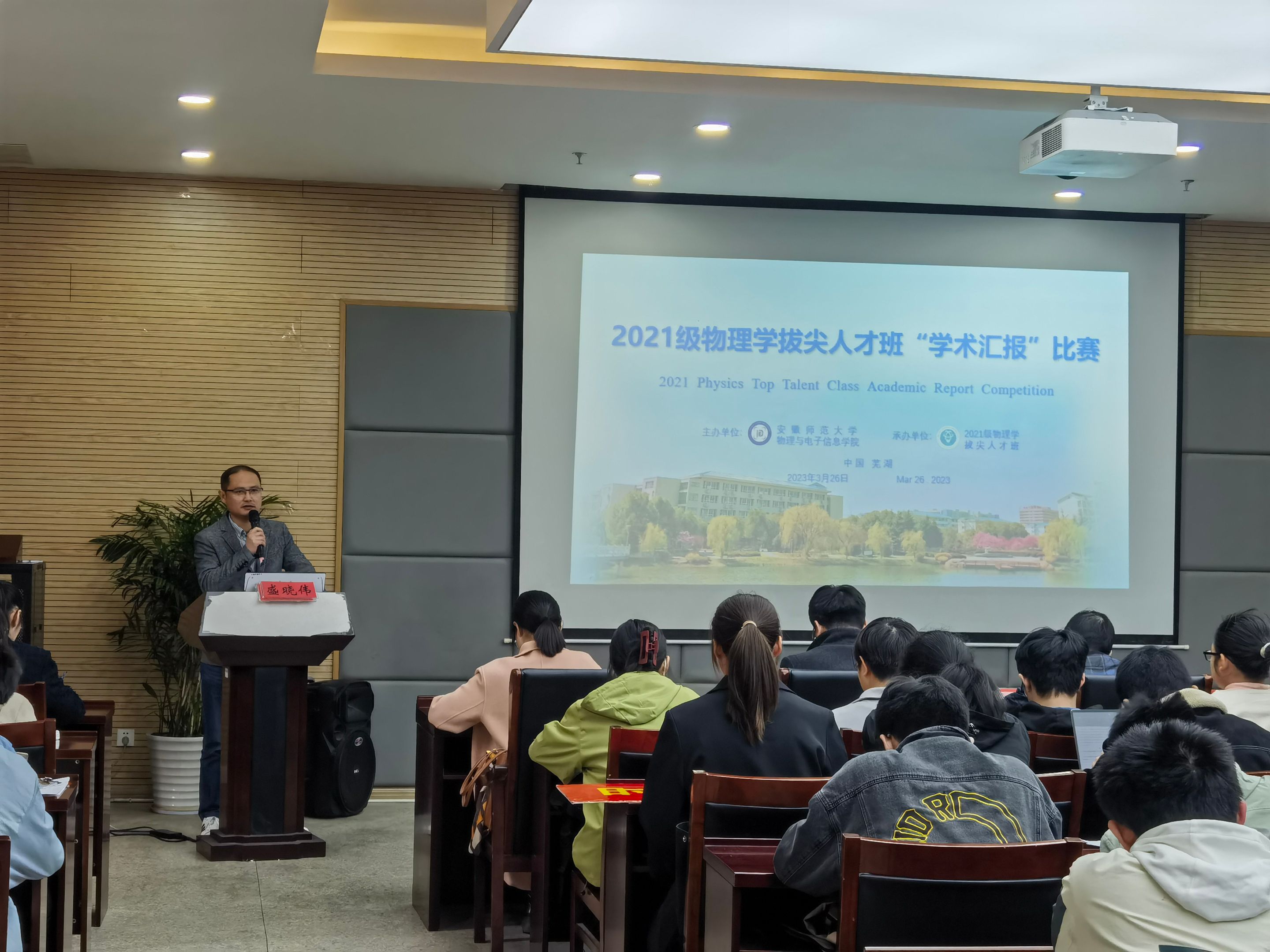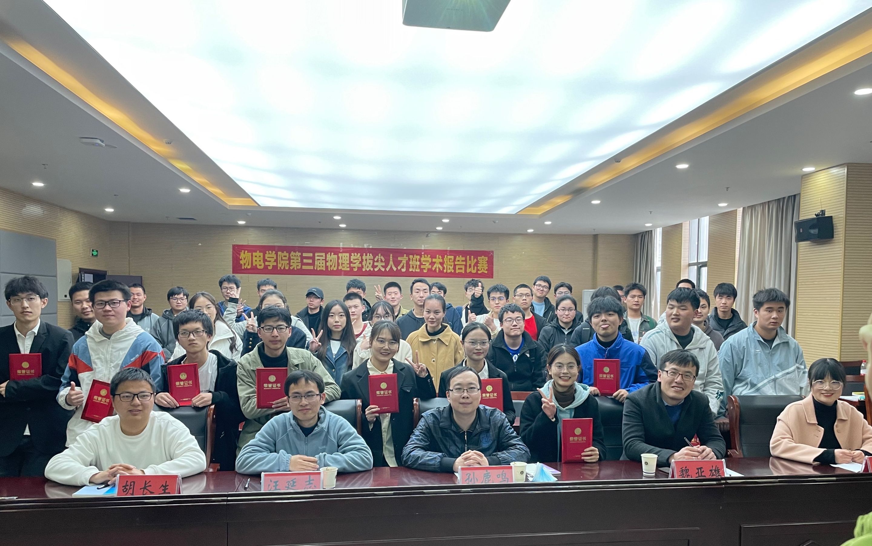 为满足国家基础学科拔尖人才的战略需求,响应学校两大“振兴计划”,培养具有良好科学精神,创新意识和一定的独立获取与应用知识能力的物理学拔尖人才。3月26日下午,第三届物理学拔尖人才班“学术汇报”比赛在物理楼304会议室成功举行,院物理学平台专业老师孙鹿鸣、魏亚雄、汪延志、梁莉、胡长生担任评委。2021和2022级物理(拔尖人才班)全体同学观摩本次比赛。比赛由2021级物理学拔尖班王子悦同学主持。