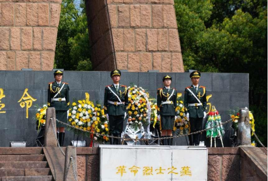在庄严肃穆的氛围下,党员青年们排着整齐的队伍来到烈士纪念碑前,校国旗护卫队向烈士纪念碑敬献花篮。全体人员脱帽肃立,向为中华民族伟大复兴事业献出生命的革命英烈默哀三分钟,致以人民英雄最崇高的敬意,铭记英烈赤古不朽的红色功勋。