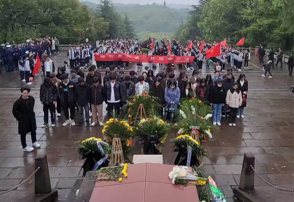 同志们有序乘坐大巴车,经半个小时路程来到神山公园。天色灰白,蒙蒙小雨给庄严肃穆的陵园增添几分沉重。一尊尊墓碑,一个便是一位位烈士的英勇牺牲。大家排好队,向着纪念碑走去。迈着一层层阶梯,不禁想到英烈先驱们为换来如今的和平安定所付出的种种艰辛,所有人都得到了思想上的洗礼。大家怀着更崇敬的心向着纪念碑默哀三分钟,并庄严宣誓,以这种方式寄托哀思。