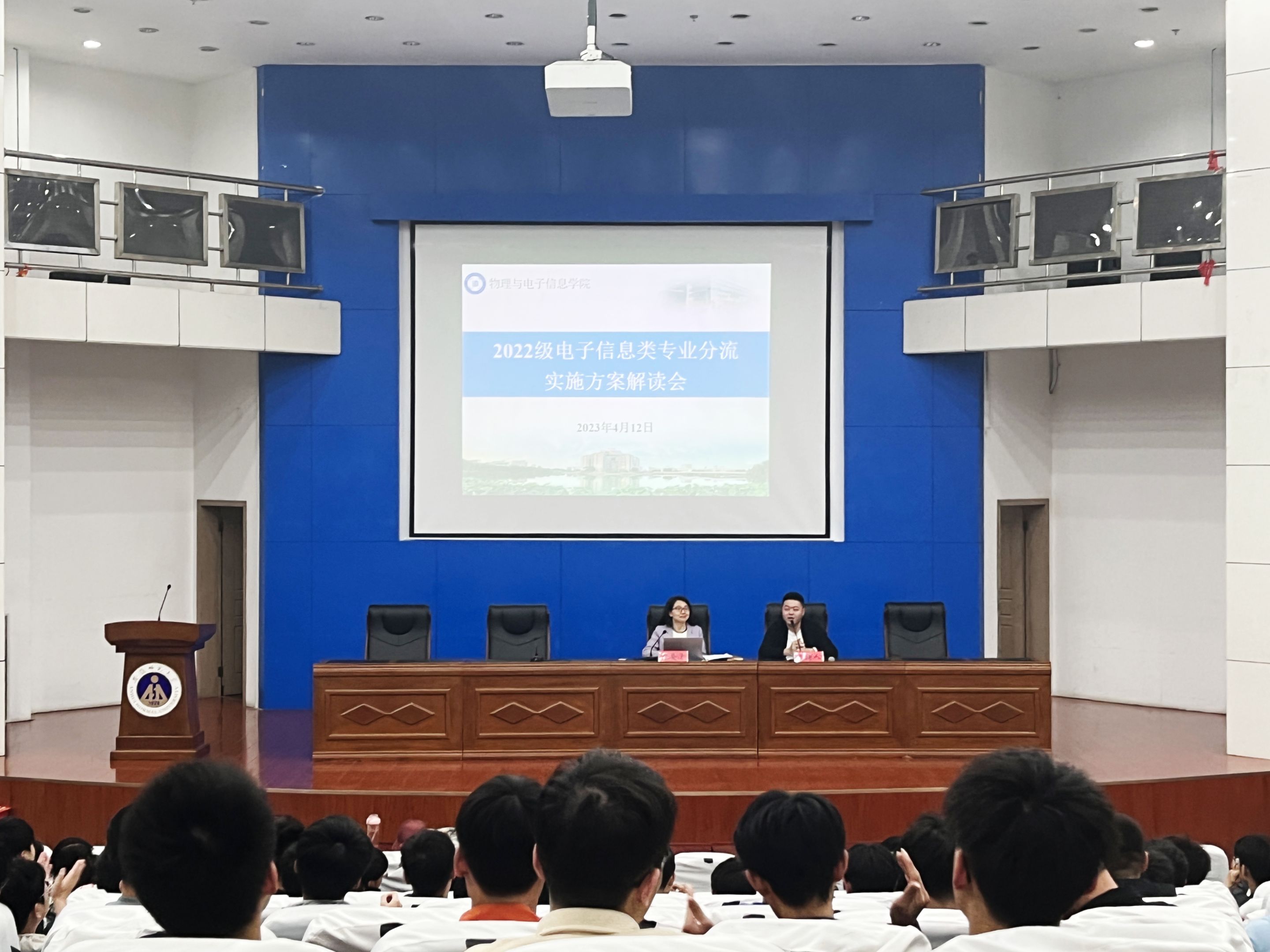 为加强学生专业认知教育,培养基础扎实、实践能力强、具有创新精神的高素质应用型工程技术人才,4月12日下午,学院在图书馆报告厅召开2022级电子信息类专业分流实施方案解读会,学院副院长张爱清参会,会议由辅导员布赫主持。