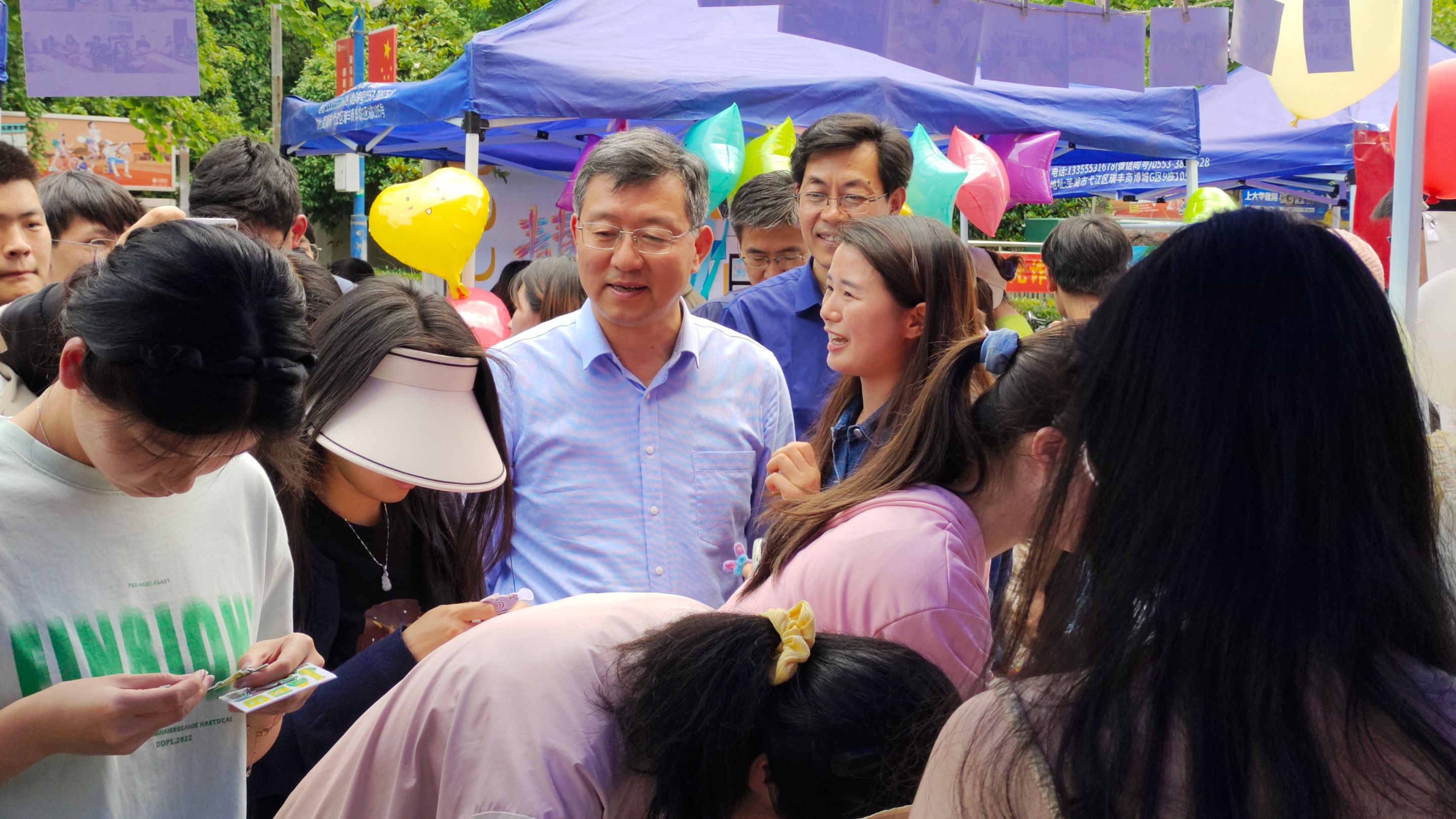 5月25日,在学校心理健康中心的统一组织下,学院发展辅导站以“青春实验室”为主题,立足专业特色,在二食堂广场开展了“解忧”黑板、“奋斗”电荷、“积分”模型和“偏见”便签趣味体验活动,参与同学可通过温馨小屋闯关集卡兑换精美礼品。活动吸引了兄弟学院的学生驻足观看、排队体验,同学们在体验游戏的同时既学习心理知识,又释放心中压力。校党委副书记周旭、学工部(处)部长邵登辉一行来到学院活动站台,与同学们亲切互动,在欢声笑语中巩固无翼鸟