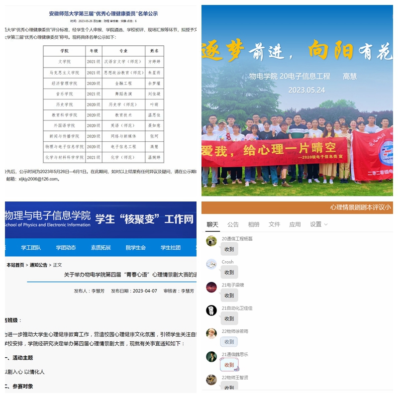 心理健康系列活动开展之初,发展辅导站响应学校心理健康中心第四届“青春心语”心理情景剧大赛和“优秀心理委员”活动号召,积极组织开展院级两项活动。微电影活动中,各班级积极响应,共收集69部心理情景剧剧本,经过学院辅导站老师们和各班级同学代表进一步评议,《以“抱”制暴》作品荣获院级金奖并推送至学校参加评比;优秀心委评选中,无翼鸟