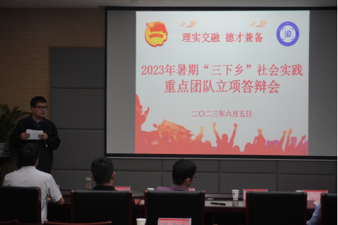 于6月15日下午5点在物理楼304召开2023年暑期“三下乡”社会实践重点团队立项答辩会。物理学(师范)专业负责人吕建平、工科实训中心主任蔺玉柱、自动化专业教师曲立国、院团委书记刘冠琪以及学院全体专兼职辅导员出席答辩会并担任评委,各实践团队负责人参与本次答辩。答辩会由学院学生王紫怡主持。