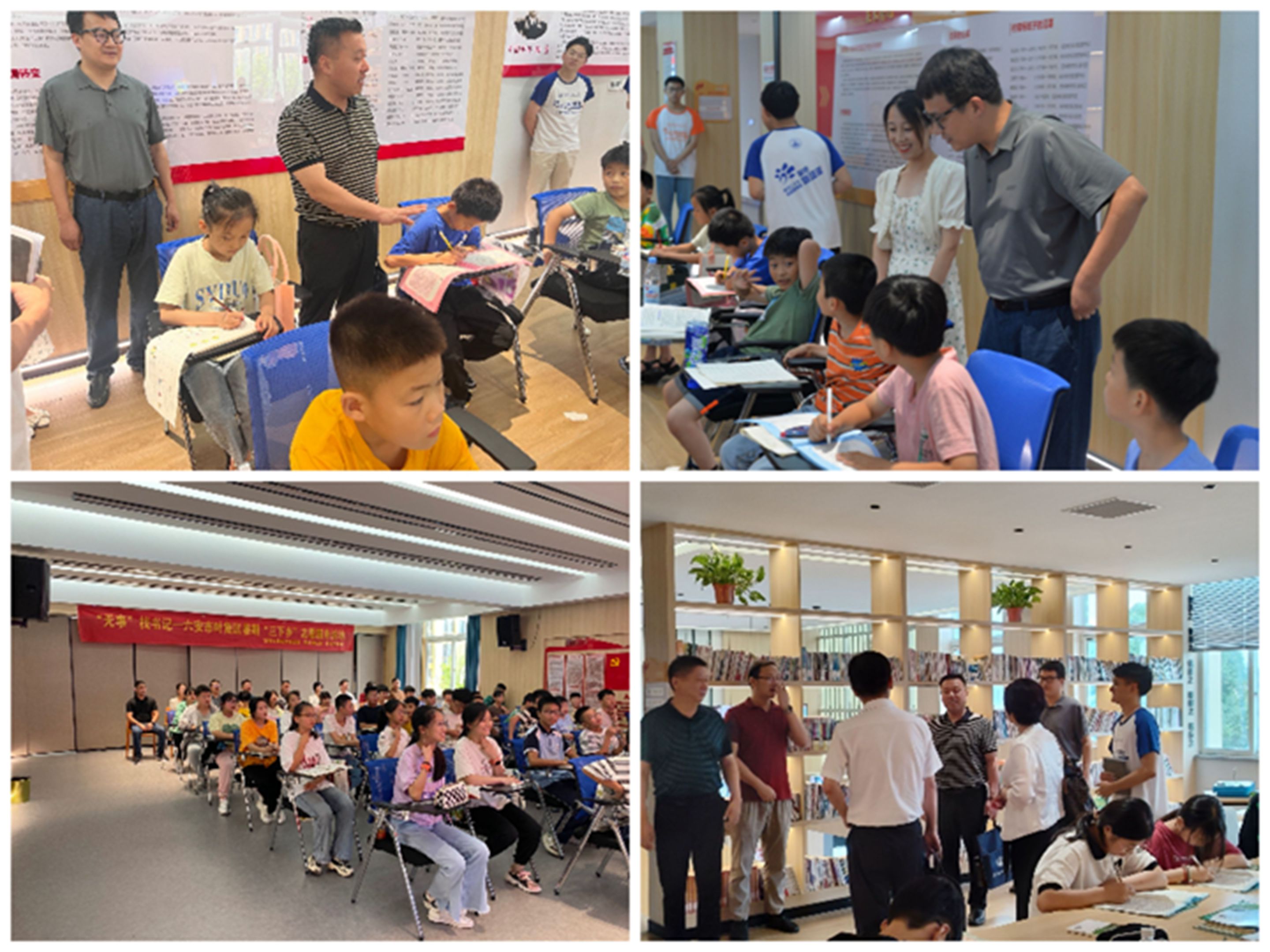 走访慰问,情系学生察实情。炎炎夏日,暑期社会实践团队的开展情况始终牵动着学院老师们的心。到达实践站后,几位老师与队员们深入交流,关心同学们在实践过程中所遇到的问题及难处。队长洪涛代表全体队员对老师们的真情关怀表示感谢,并介绍了团队基本情况及未来工作计划。随后,几位老师先后察看了小学部、初中部的教学开展情况,现场听取了一堂物理教学课。