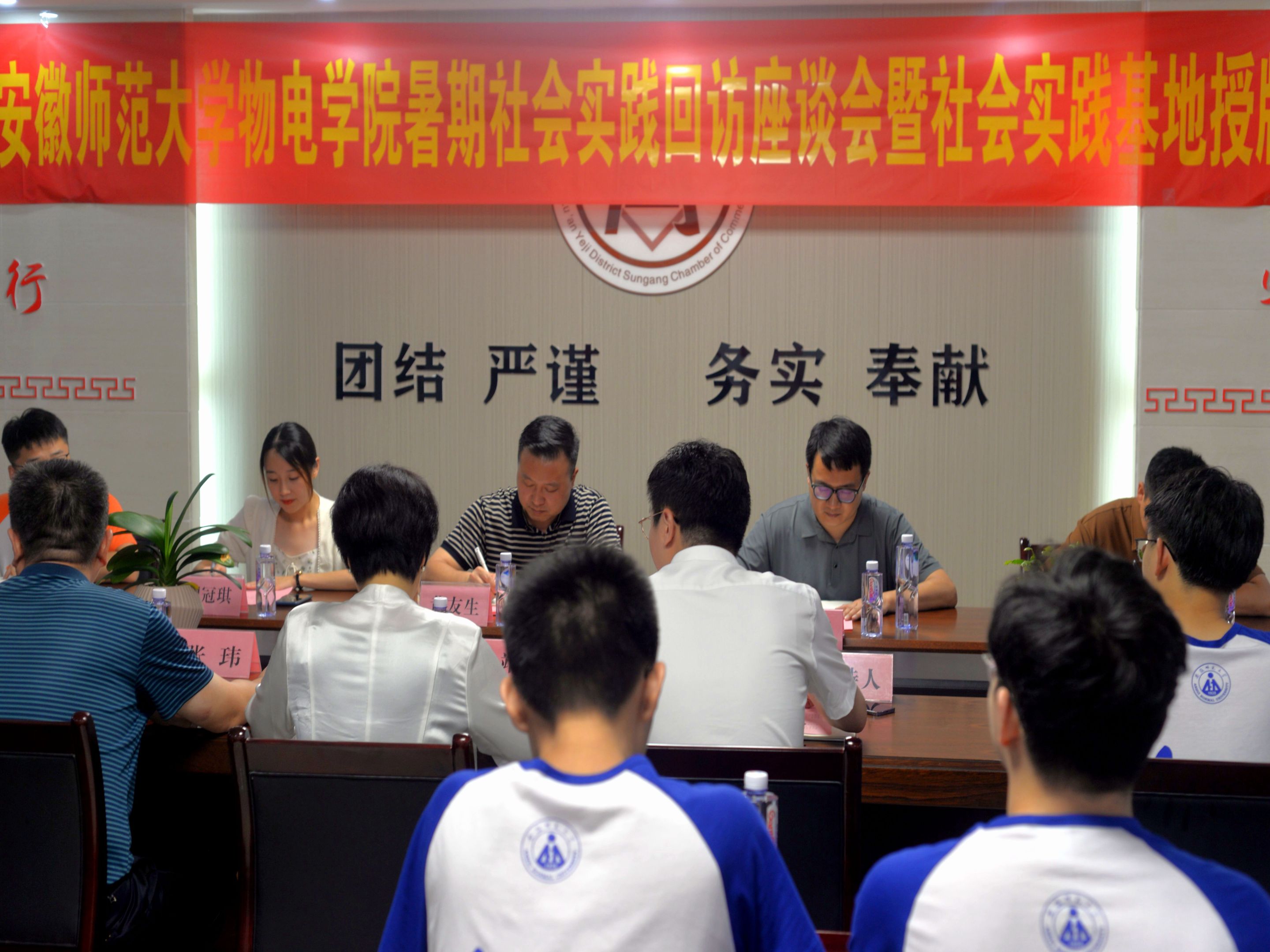 暑期社会实践团队的到来,落实了叶集区“人才强区”战略,区委将会努力满足实践团队的需求,保障实践学生人身安全。黄友生代表学院对叶集区和孙岗乡两级政府的大力支持表示感谢,对支教队员的付出表示肯定。他指出,暑期社会实践机会难得,是大学生开阔视野的窗口和提升个人专业素质的重要途径,希望支教队员能够认真对待本次实践活动,在实践期间注重言行举止,树立师大人的榜样模范形象。他强调全体实践成员应守住安全底线,确保实践对象安全的同时也应注重自身安全。“我生在孙岗村,学在孙岗村,上了大学后,我深刻认识到了不同地区教学资源的参差,我也想为家乡的孩子们做些什么。”“我是一名师范生,今年是我第一次参加支教活动,小朋友们在课堂上积极互动,十分配合,他们对知识的尊重与渴望让我更加深刻认识到教师这一身份的意义所在。”8名支教队员代表先后发表自己的实践感受,感情真挚热忱。会议最后,双方达成共识,共建校级实践基地,将叶集区孙岗村打造成高水平、高质量、示范性的安徽师范大学暑期社会实践平台。孙岗乡党委书记张玮、安徽师范大学无翼鸟