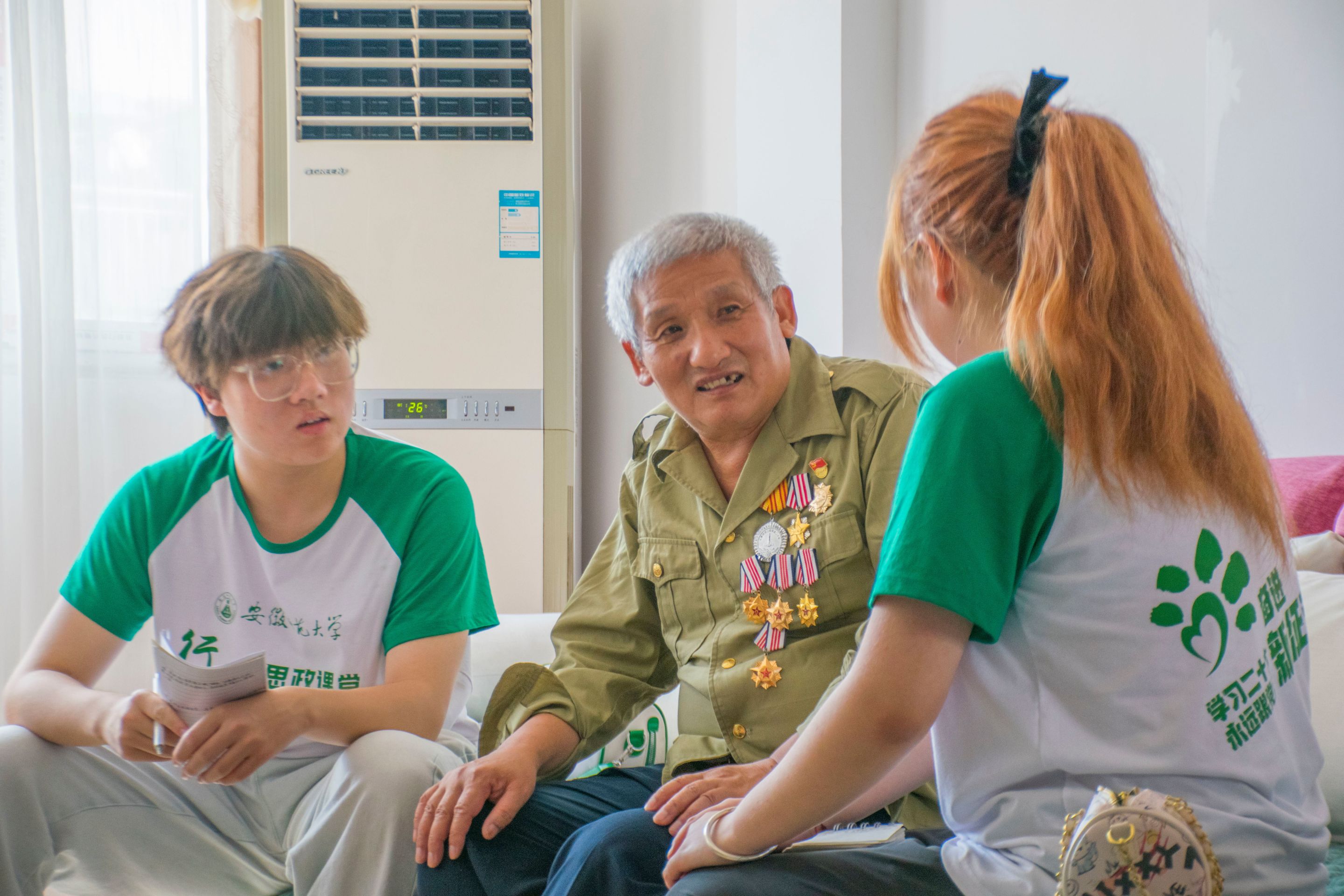 赴芜湖“红忆追史”走访抗战老兵本科生社会实践团队前往退伍老兵李文录家进行采访,李文录爷爷向团队成员讲述了航空维修兵不为人知的故事,用他的人生经历向团队成员传递了自强不息、奋斗拼搏的红色革命精神。