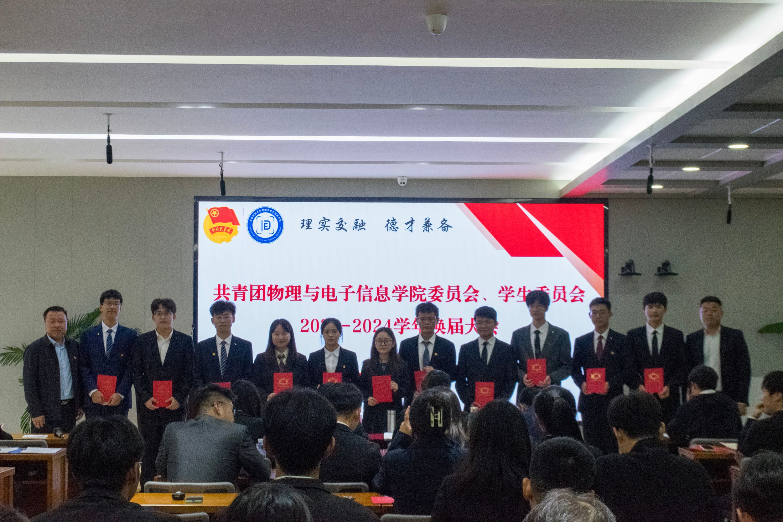 委员会、学生委员会2023-2024学年换届大会。学院党委副书记黄友生、院团委书记张津源、院学生会指导老师布赫以及全体专兼职辅导员出席会议,2022-2023学年院团委、学生会主要负责人及新学年院团委、学生会全体工作人员参加会议。