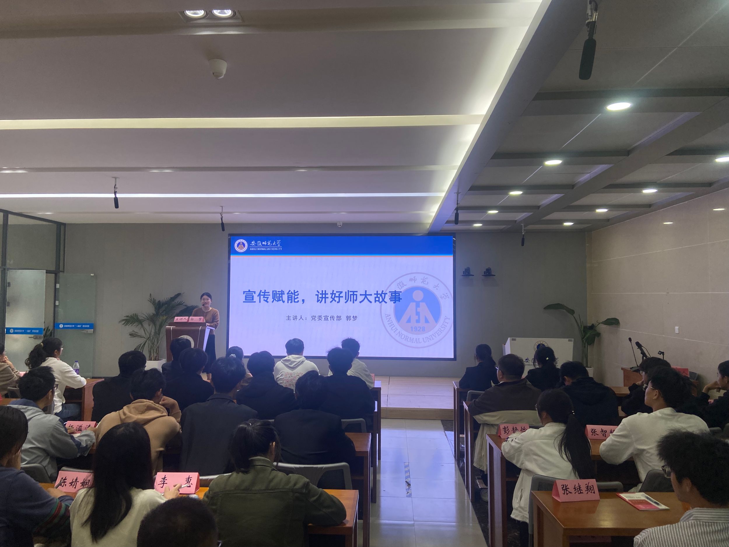 强化业务素质培养是提高学生干部综合履职服务能力的重要途径。校团委办公室主任王申振老师全面讲解了我校“第二课堂”成绩单制度,并结合“挑战杯”赛事讲述创新创业类学科竞赛的挖掘与培养,激励同学们带头敢于创新,勇于挑战;党委宣传部郭梦老师围绕“为什么要进行校园宣传工作?”“校园新闻宣传工作能带来什么?” “校园新闻宣传工作是什么?”“校园新闻宣传工作怎么做?”鼓励团学青年讲好师大故事。