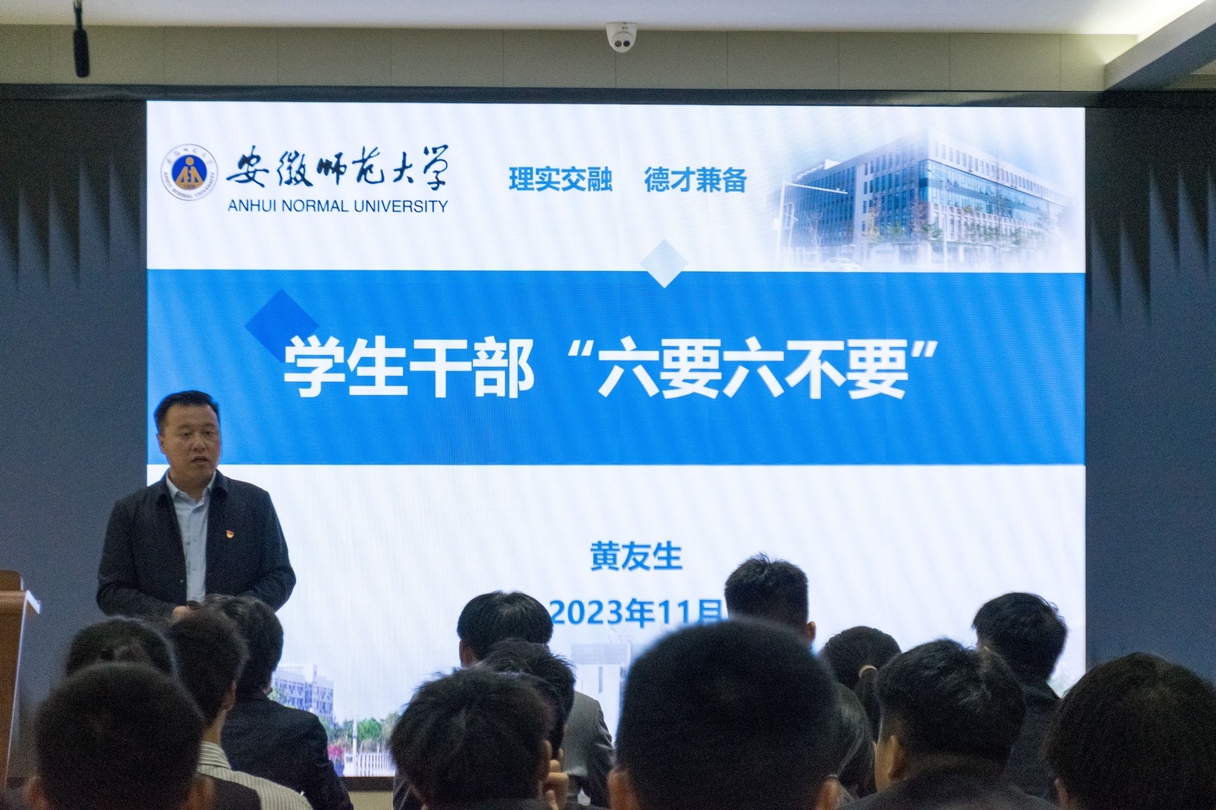 坚定理想信念是青年成长成才的力量之源,党的二十大代表、安徽师范大学马克思主义学院教授路丙辉以“在更高处遇见更好的自己”为题,勉励学生要实事求是,不断砥砺认知力;需要勤于实践,不断增强执行力;需要立志高远,不断提升原动力。院党委副书记黄友生从学生干部的“六要六不要”切入,结合国内外形势,以高校出现典型事件为例,引导青年坚定理想信念,补足精神之“钙”。