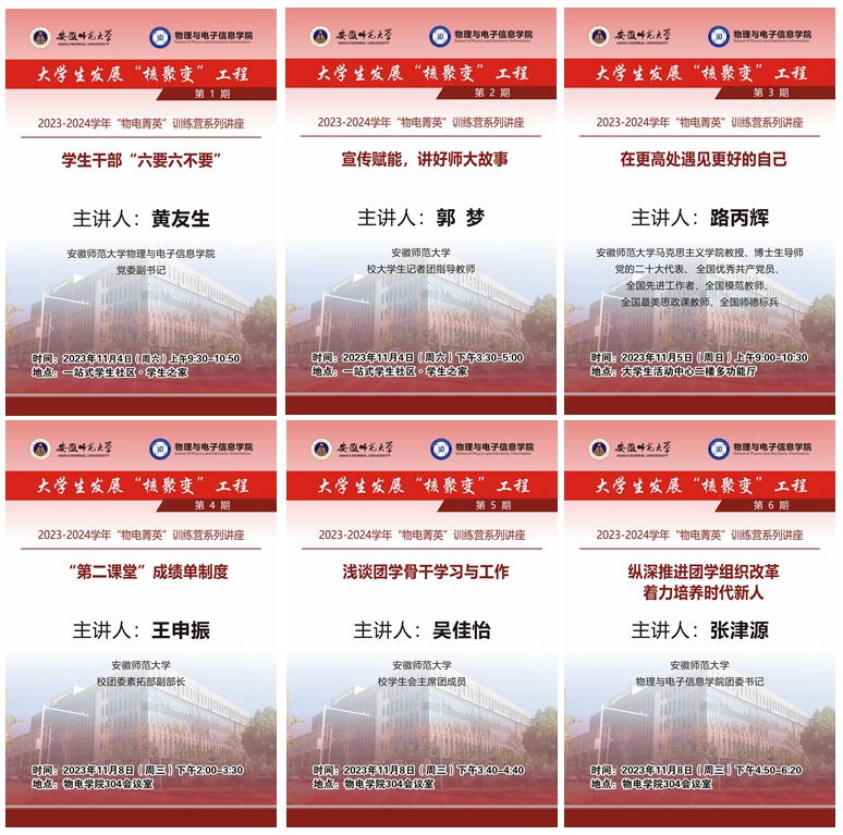 在一站式学生社区通过6场专题讲座,为学院2023-2024学年“物电菁英”训练营学院精准赋能。