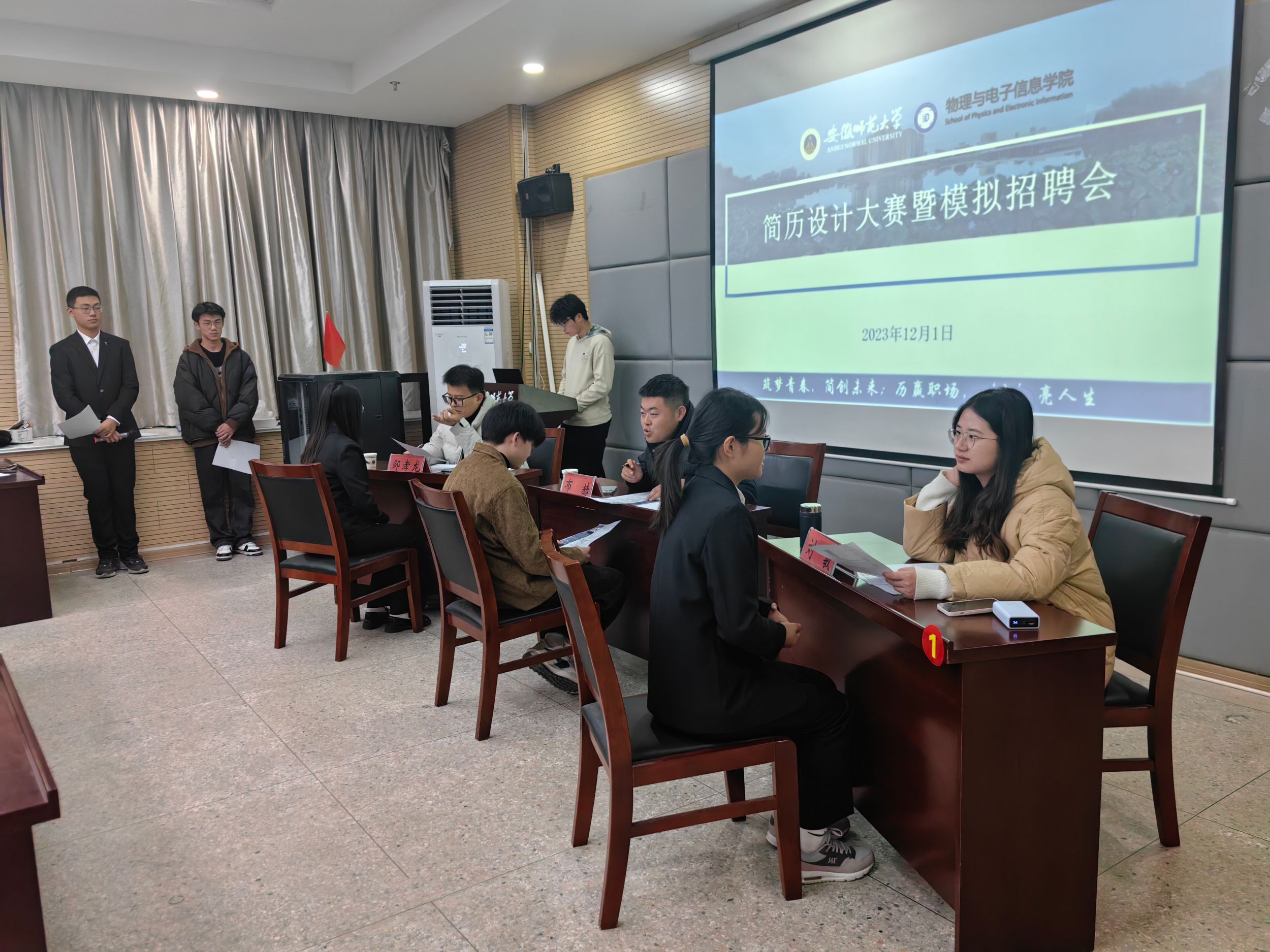 学生会(综合部)于12月1日19:00在物电楼335教室举办了简历设计大赛暨模拟招聘会。布赫、刘敏、邹孝龙受邀出席本次比赛并担任评委。决赛由综合部刘天浩主持。