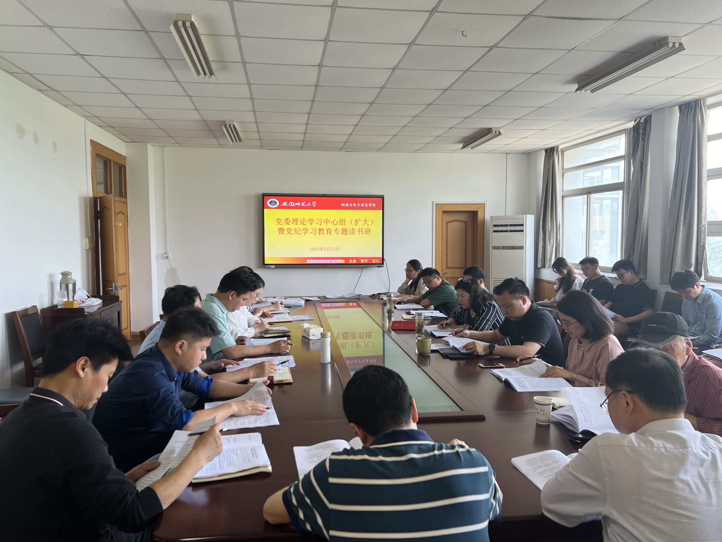 召开党委理论学习中心组(扩大)学习会暨党纪学习教育专题读书班。院领导班子成员、党委委员、纪委委员、党支部书记、各科室秘书及全体专兼职辅导员参加会议。院党委书记李娟主持会议。