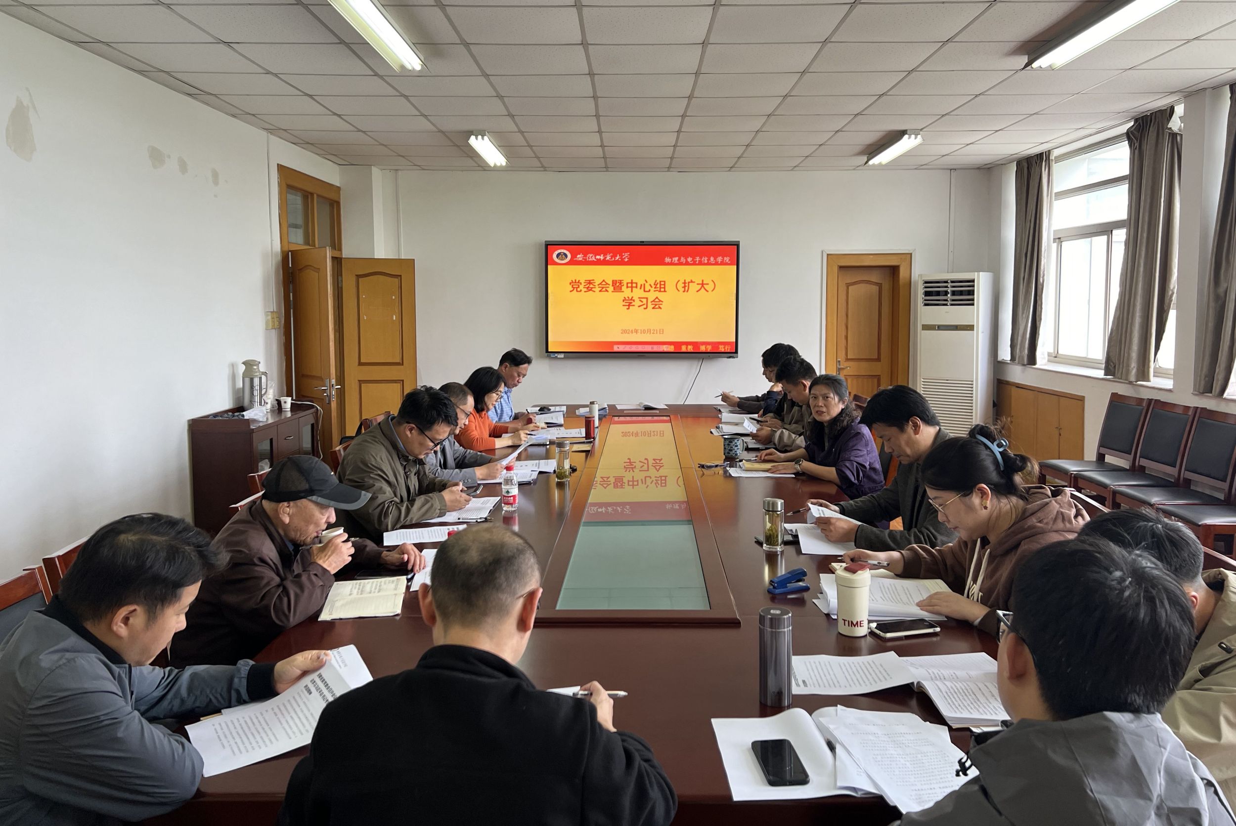 召开党委会暨党委理论学习中心组(扩大)学习会。院领导班子成员、党委委员、纪委委员、党支部书记参加会议。院党委书记李娟主持会议。