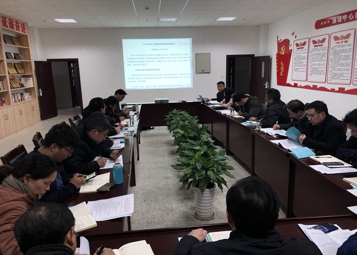 院党委副书记黄友生带领学习了《中共中央关于加强党的政治建设的意见》,并就《意见》中的政治建设的总体要求、坚定政治信仰、坚持党的政治领导、提高政治能力、净化政治生态、强化组织实施六个部分进行了解读。