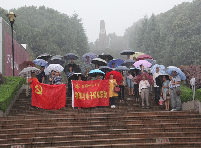 冒着大雨,按照专题教育学习计划,学院党委书记李娟带领大家来到坐落在市区东麓的芜湖市烈士陵园,了解到这里曾爆发过奇袭官陡门、激战马家园、血战父子岭、繁昌保卫战、湾址歼灭战等著名的战斗,走出过安徽省第一任省委书记王步文烈士等革命事迹与革命故事。通过专题教育,引导党员干部更加自觉地以党章、党的纪律、国家法律规范言行,自觉践行党在长期实践中形成的优良传统。
