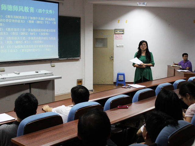 会上,学院副院长郑贤锋带领全体教职工共同学习了教育部加强高校科研经费管理的三个文件,即《教育部 财政部关于加强中央部门所属高校科研经费管理的意见》(教财〔2012〕7号)、《教育部关于进一步加强高校科研项目管理的意见》(教技〔2012〕14号)、《教育部关于进一步规范高校科研行为的意见》(教监〔2012〕6号)。他还结合学院科研管理的现状,对文件中的重要论述进行了解读,并鼓励学院教师积极申报各类科研项目,也希望教师牢固树立法律意识,用好、管好科研经费,规范科研行为。