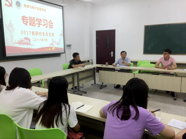 党委委员张季谦教授莅临此会,全体2017级研究生党员及入党积极分子列席了会议,会议由支部书记李子旻主持。