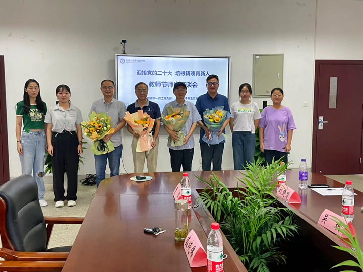 座谈会后,学生代表向与会教师赠送鲜花并合影留念。