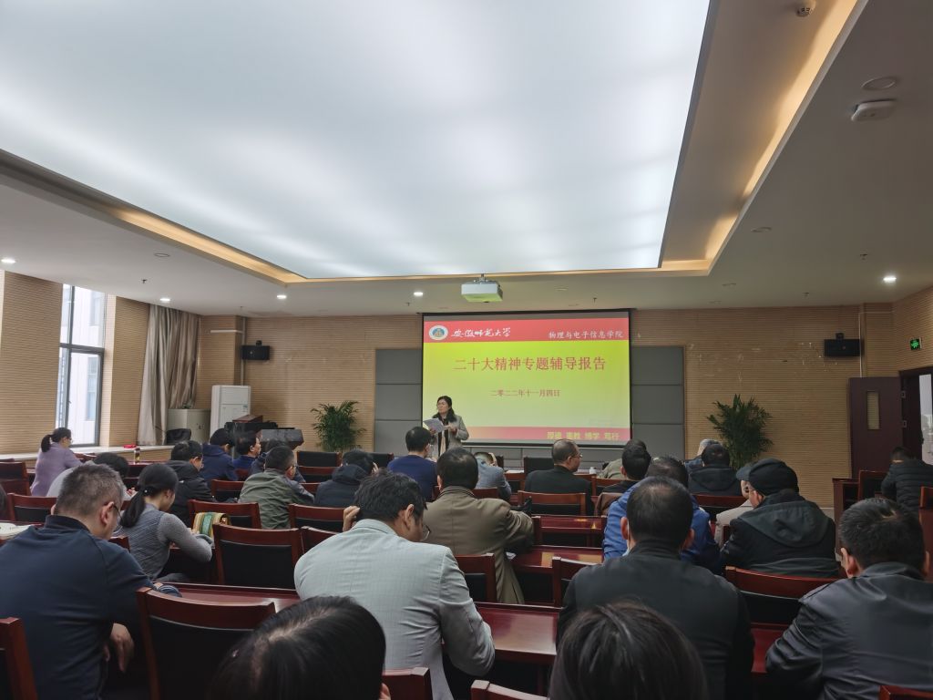 党委于11月4日召开教职工大会,专题学习党的二十大精神,会议还邀请了学校党委常委、宣传部部长胡靖作题为《全面建设社会主义现代化国家的 政治宣言和行动纲领 》专题报告。学院党委书记李娟主持报告会。