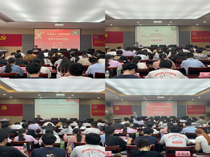为帮助学员更深入地学习了解党的理论知识,学院分党校邀请多位老师开展深层次理论专题辅导讲座。学校党委组织部组织科科长李高举带领学员学习了《中国共产党党员教育管理工作条例》精神;学校党委宣传部理论教育科科长张春光讲授了《与党同心,与时代同声——歌声中的百年党史》辅导报告;李娟以《学习贯彻新党章、奋进时代新征程》为题为学员作了专题讲座;黄友生作了题为《为深入推进全面从严治党提供坚强纪律保障——深入学习领会中国共产党纪律处分条例(2023)》《解读三大行动计划》专题讲座;物理学拔尖人才班班主任、教授、博士生导师盛晓伟讲授了《面向新时代创新驱动发展战略的当代大学生》辅导报告。