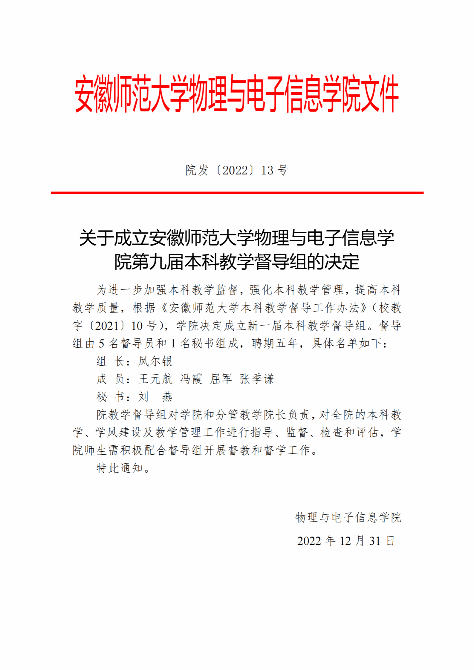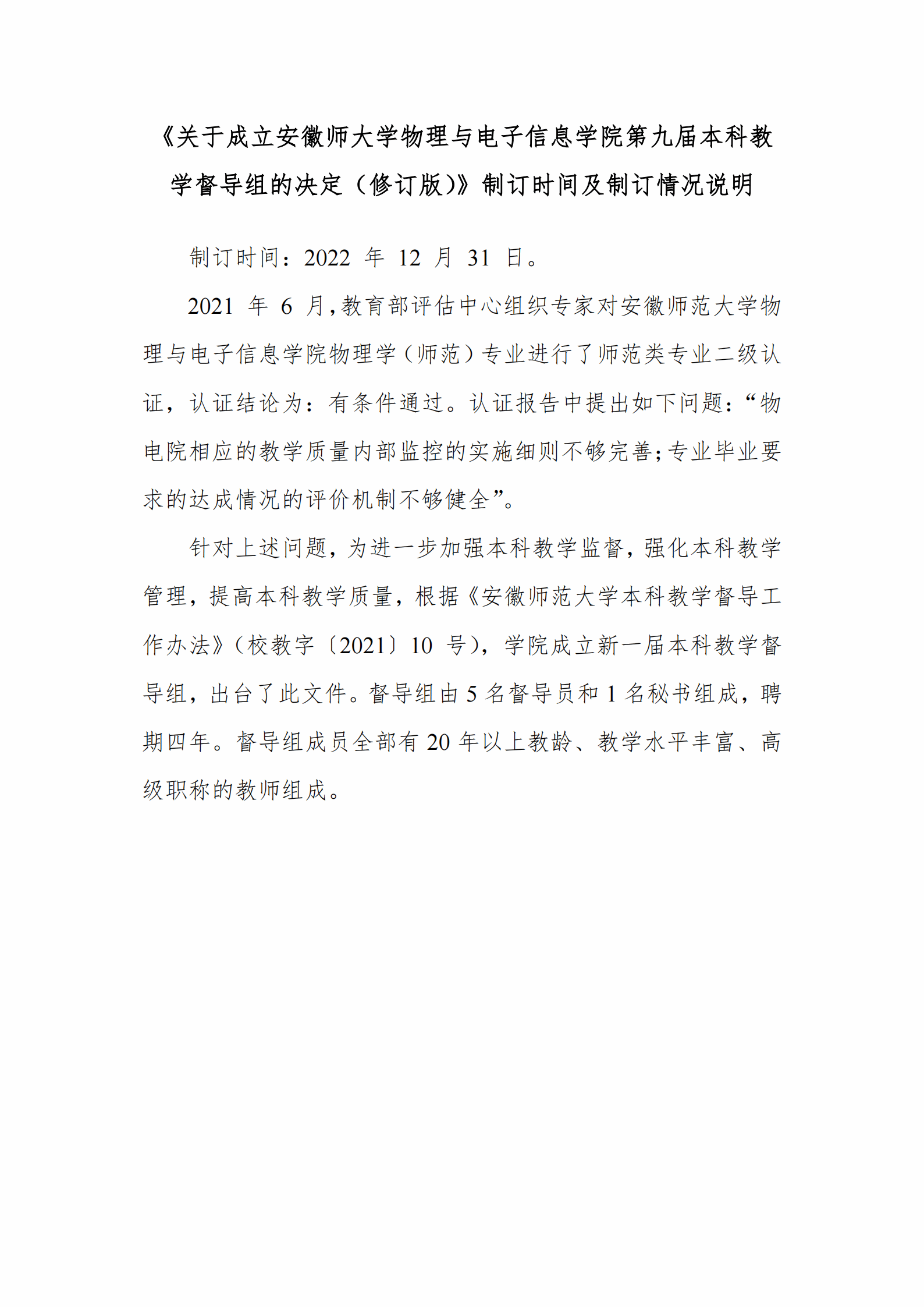 《关于成立安徽师大学无翼鸟 第九届本科教学督导组的决定(修订版)》及制订情况说明