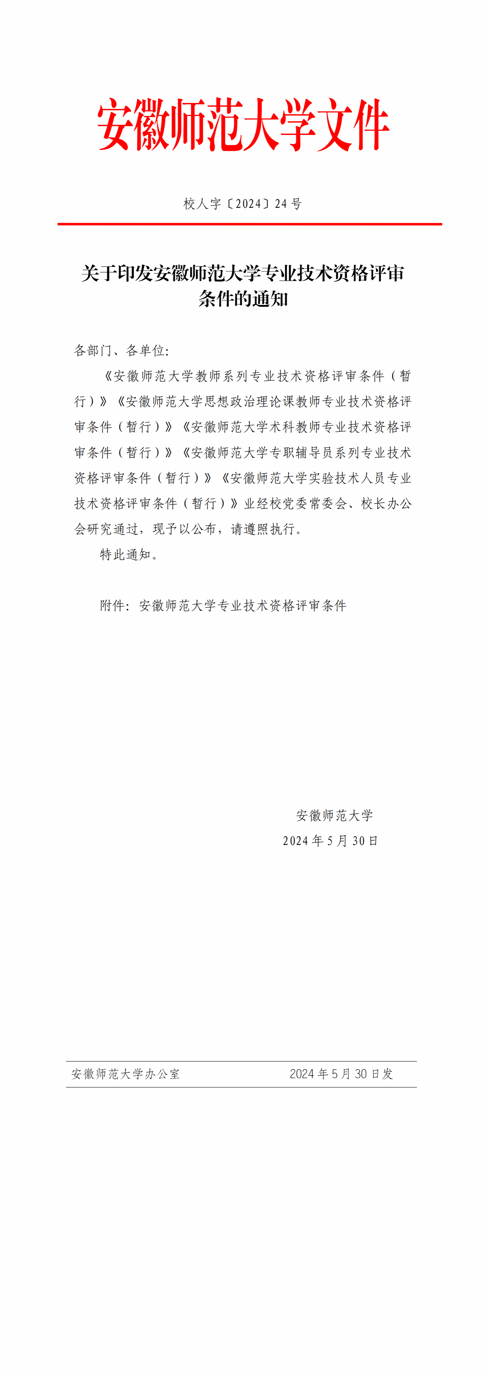 《安徽师范大学教师系列专业技术资格评审条件(暂行)》